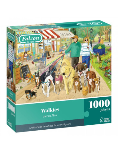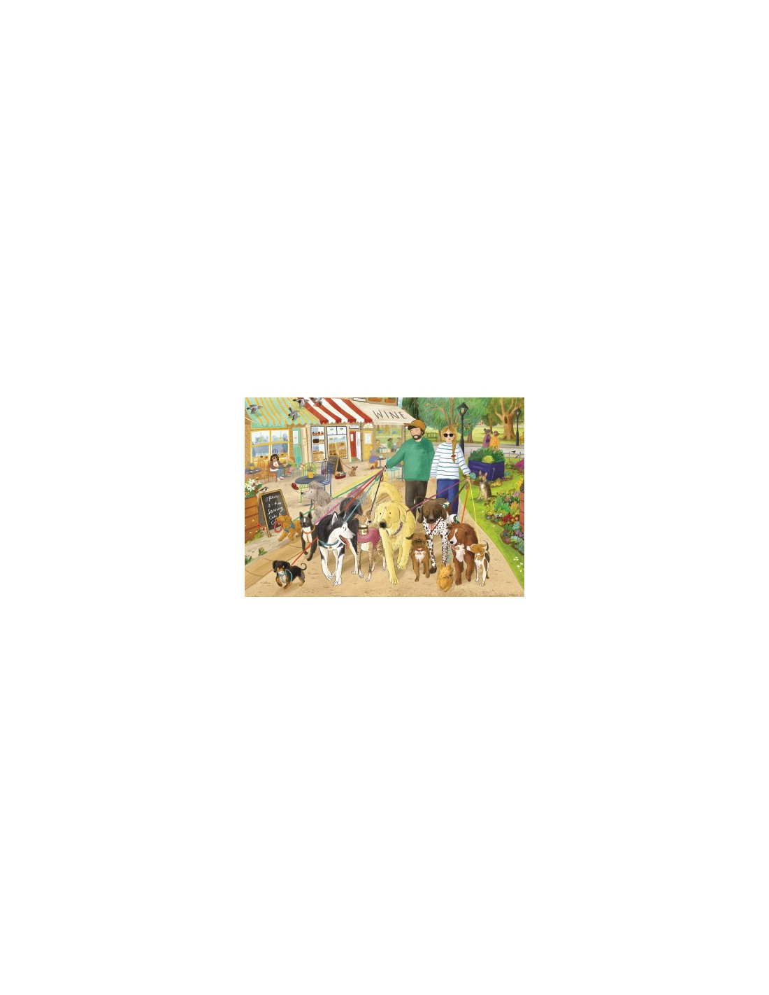 • En grupp olika hundar rastas av tvĂ„ personer i staden. De fĂ€rgglada kopplen skapar ett nĂ€tverk av förbindelser mellan hundarna och deras Ă€gare