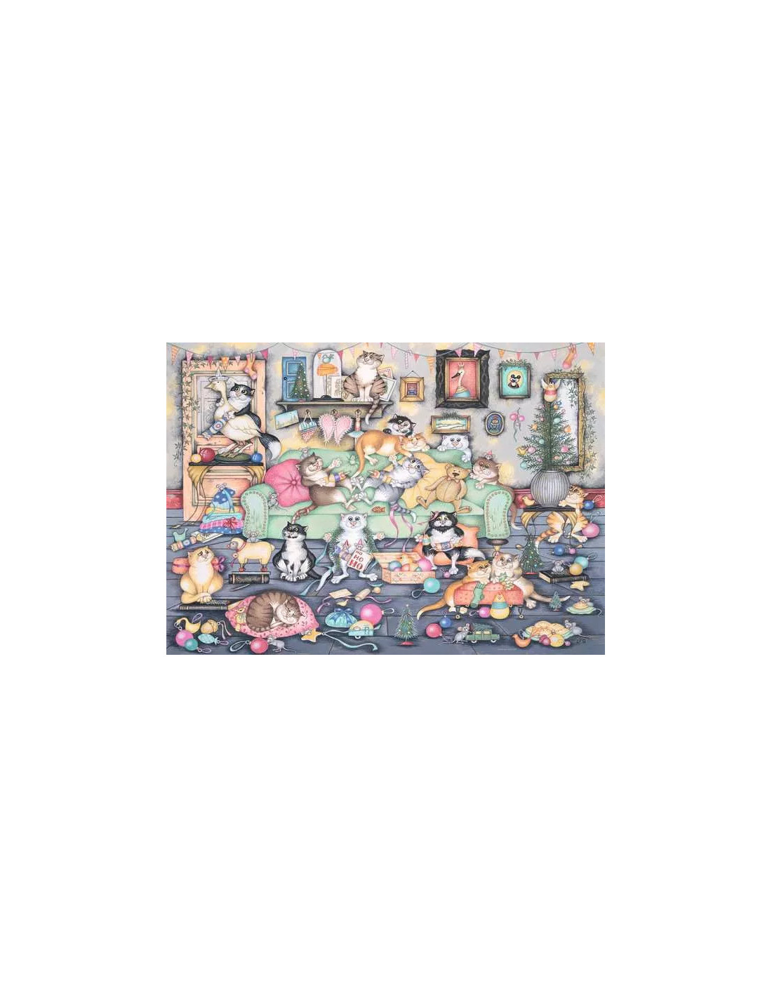• De mĂ„nga katterna myser i det julpyntade vardagsrummet