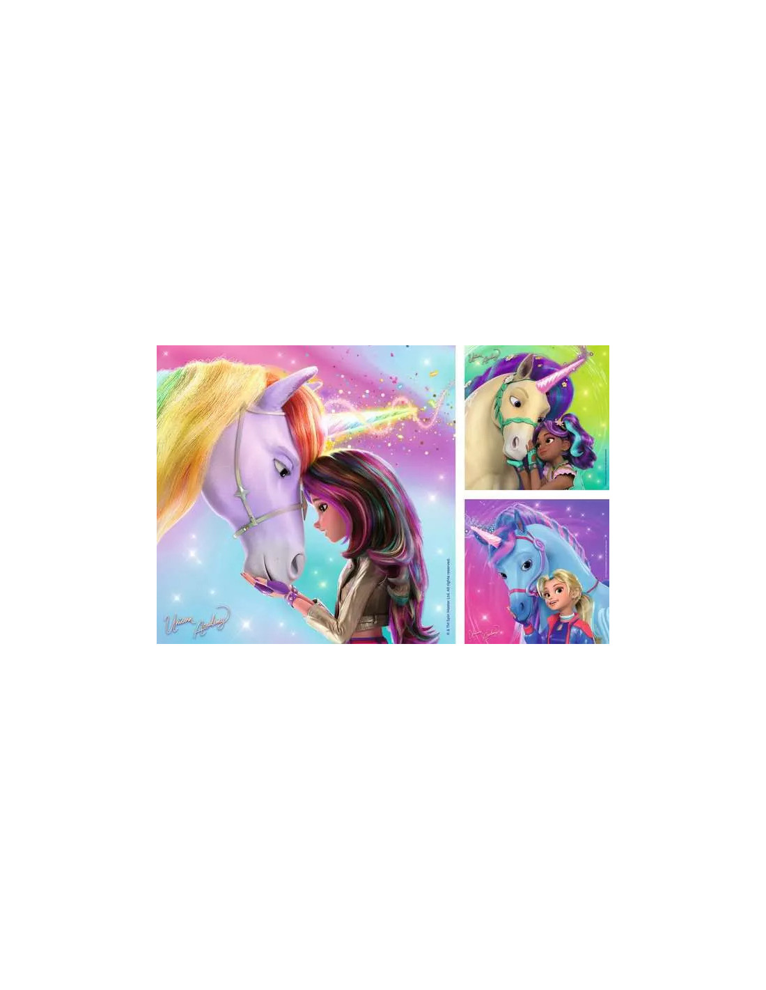 • Tre olika motiv frĂ„n Netflix-serien om enhörningarna