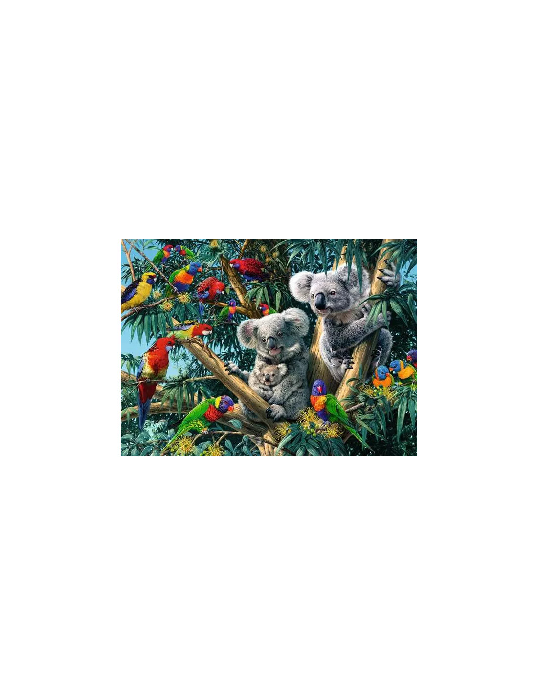 • Den lilla koalafamiljen bland fĂ€rgglada papegojor