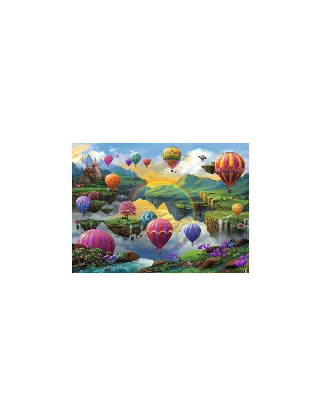 • De fĂ€rgglada luftballongerna svĂ€var mellan flytande öar och frodig natur