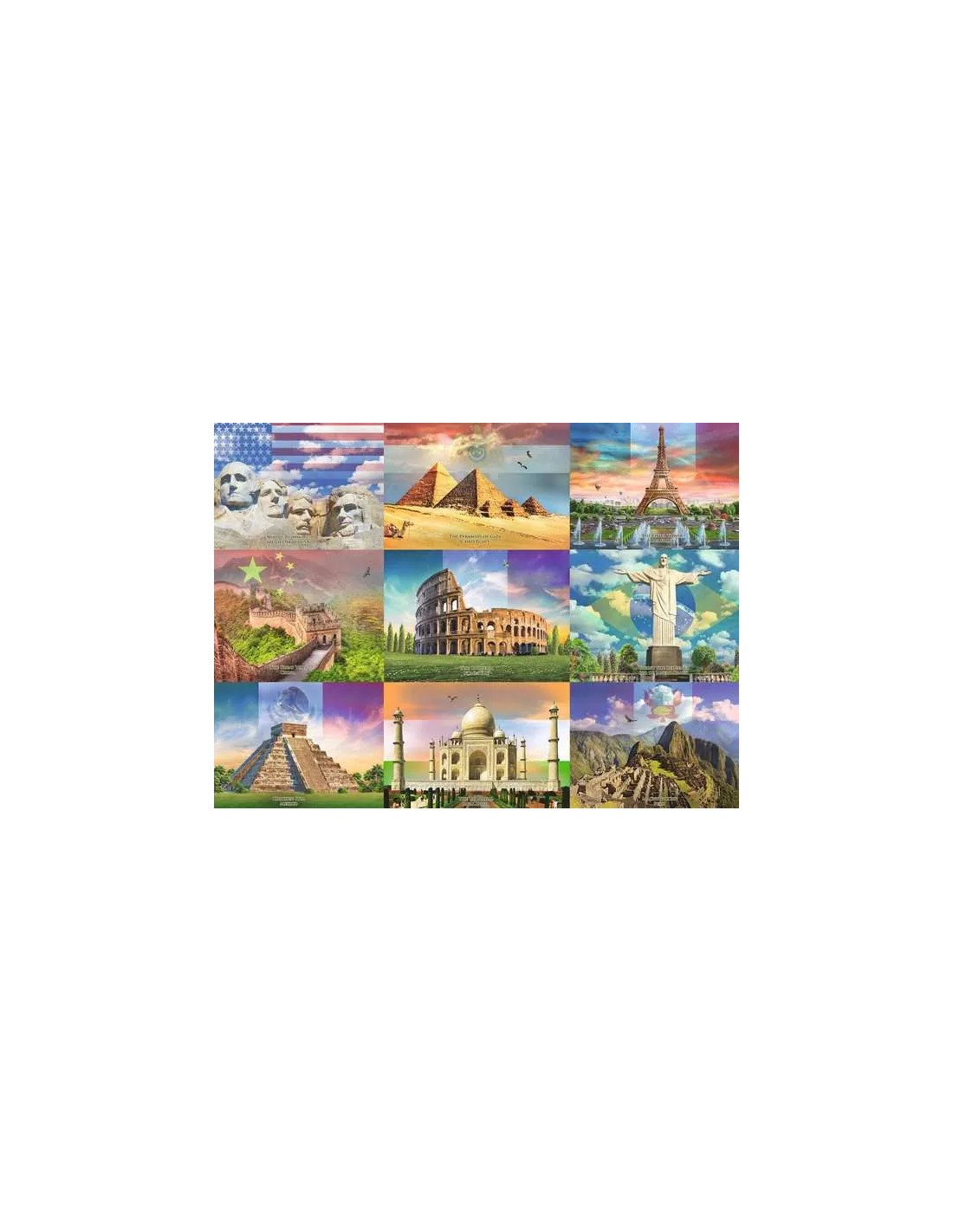• Collage med nĂ„gra av vĂ€rldens imponerande byggnadsverk