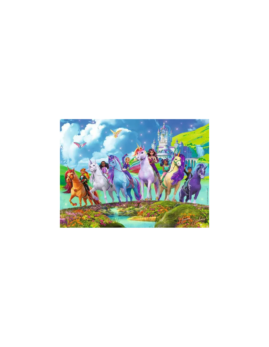 • Flickan sitter pĂ„ den strĂ„lande enhörningen. Motivet Ă€r frĂ„n Unicorn Academy, som Ă€r en Netflix-serie.