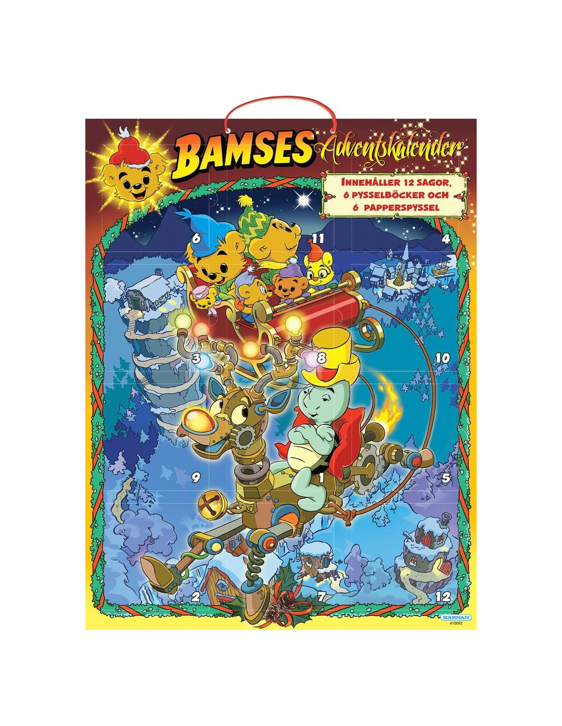 Bakom luckorna döljer sig 10 berÀttelser, 12 pappfigurer (fördelat pÄ 6 luckor), 4 mÄlar-/pysselböcker och ett memospel (fördelat pÄ 4 luckor). Med denna kalender kan du uppleva nya Bamse-Àventyr varje dag fram till jul!