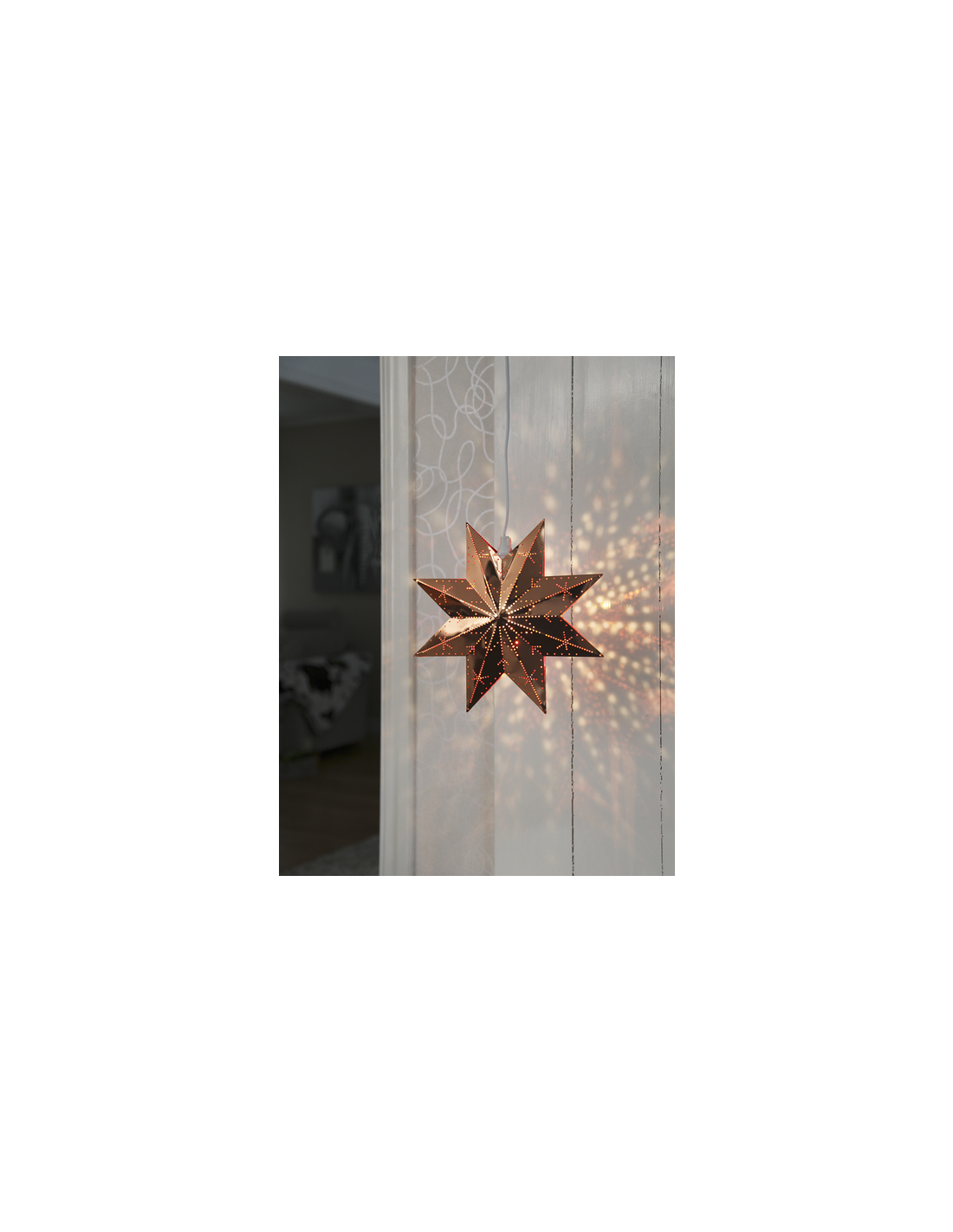 Vacker kopparfärgad metallstjärna för inomhusbruk.