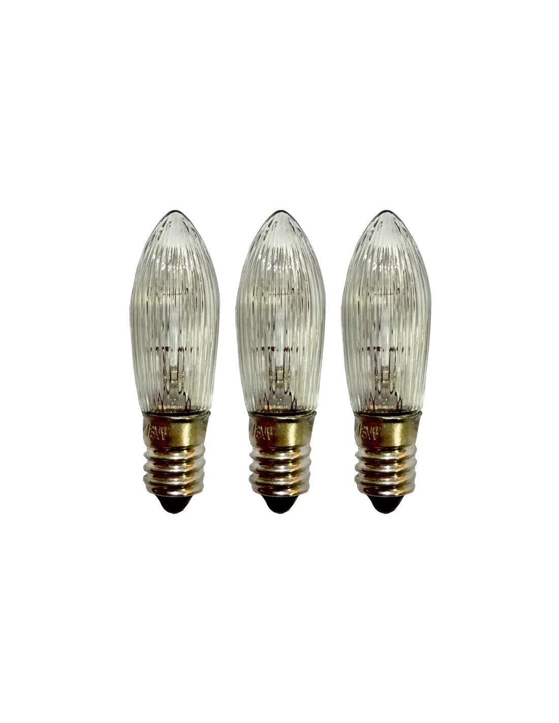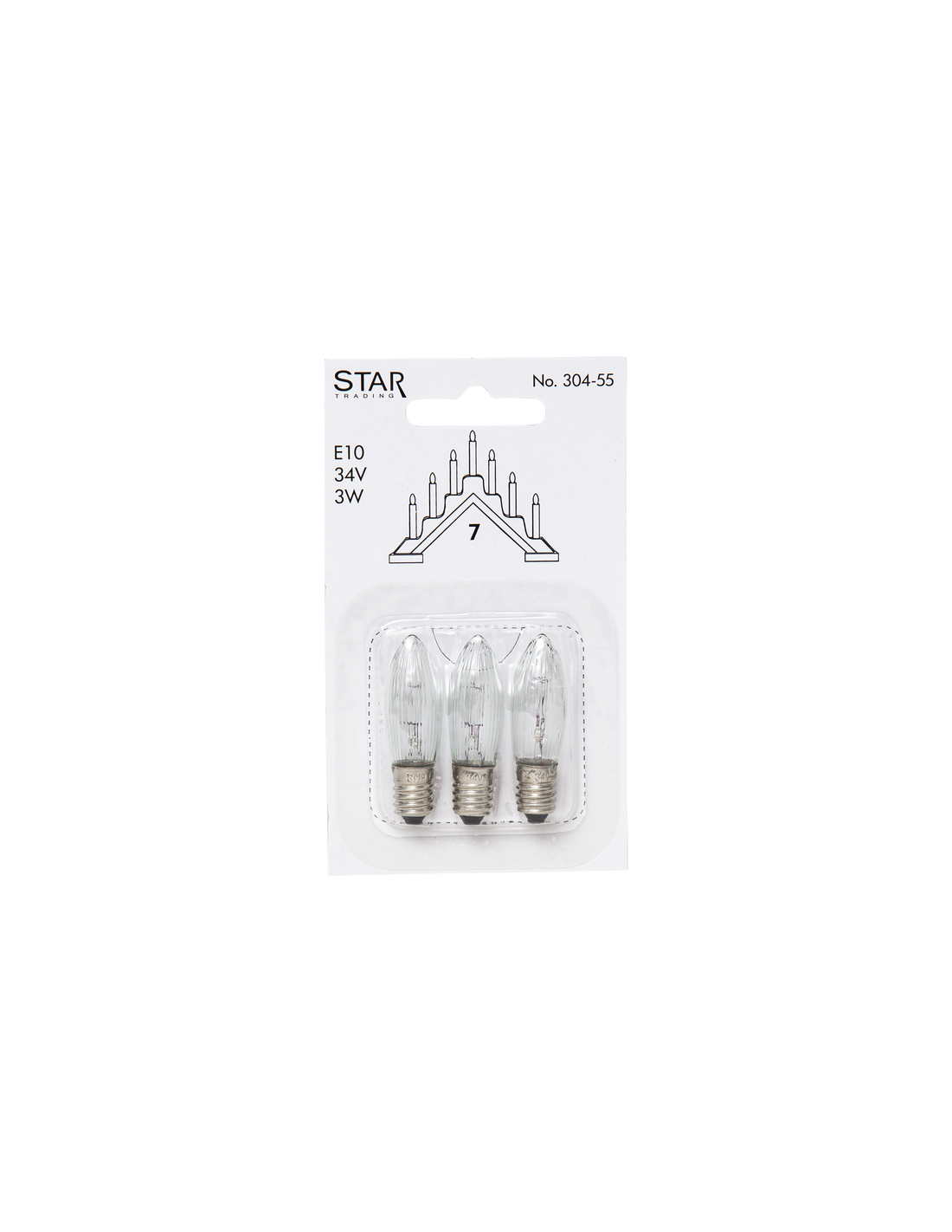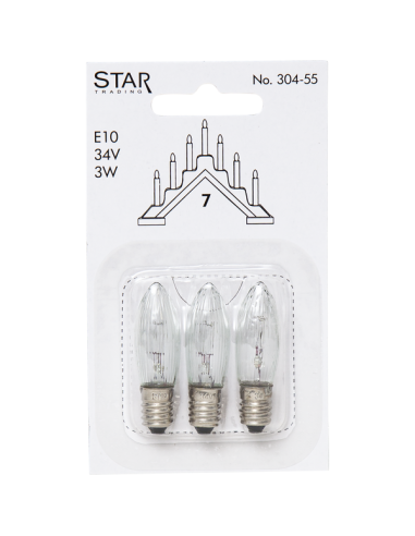 Reservlampor i 3-pack med E10 sockel, klart glas och 34V.