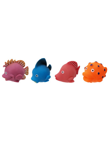 Fina badleksaker med motiv av fiskar i olika fÀrgglada nyanser! SÀljs i 4-pack.