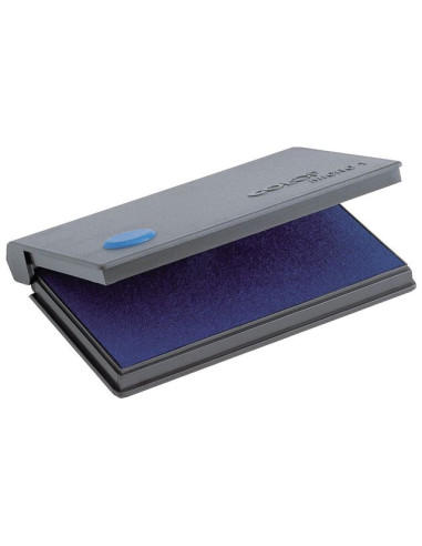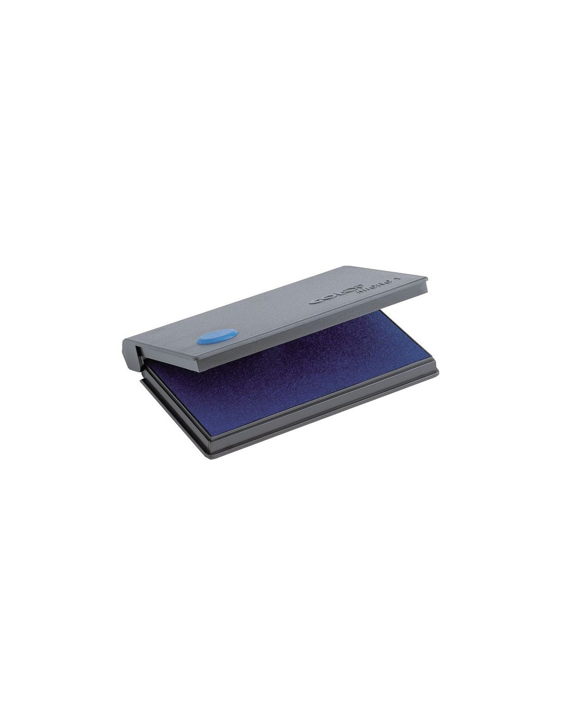 Stämpeldyna med skumgummiinlägg och microporös ytbeläggning för infärgning av gummistämplar. Blå dokumentäkta stämpelfärg.