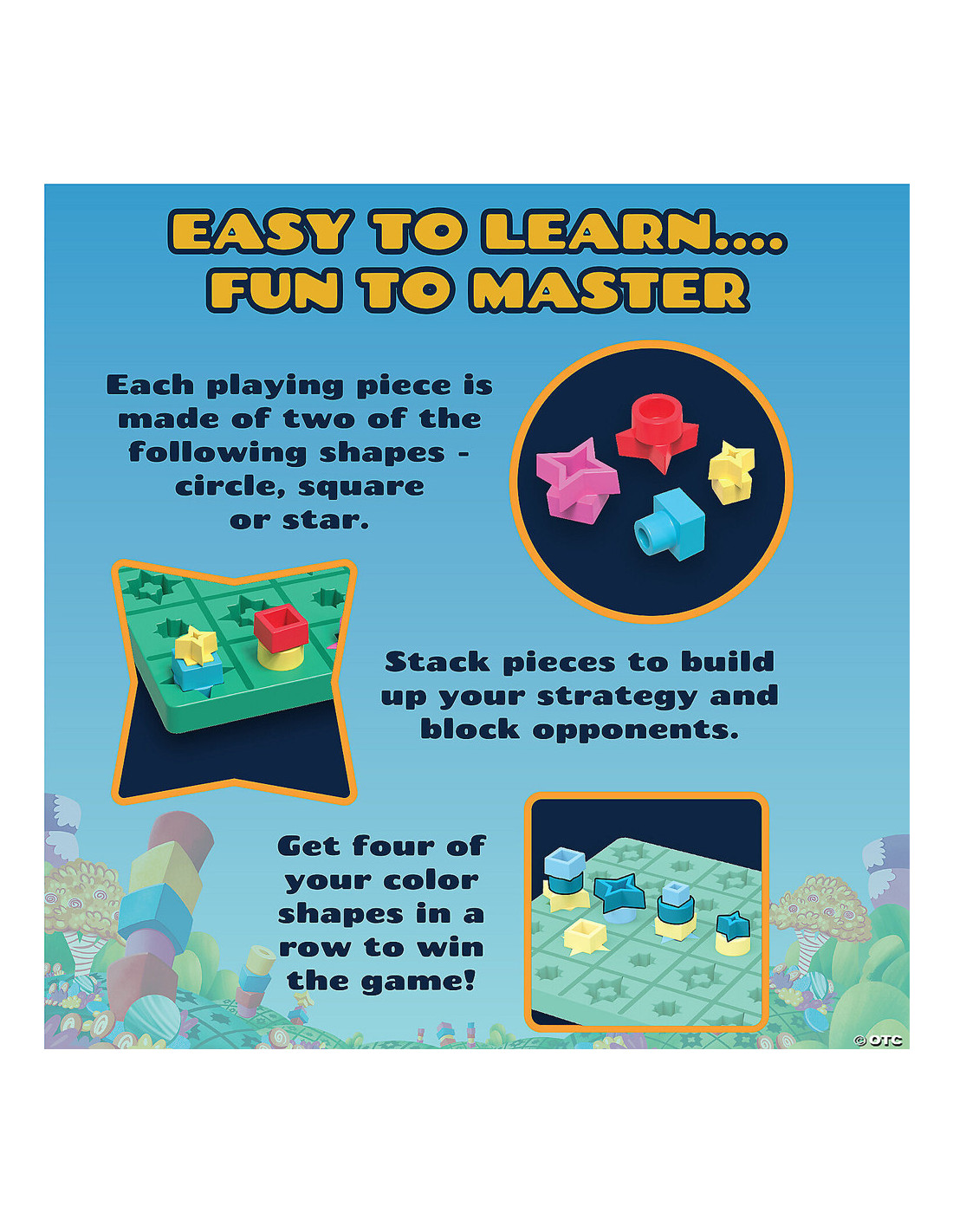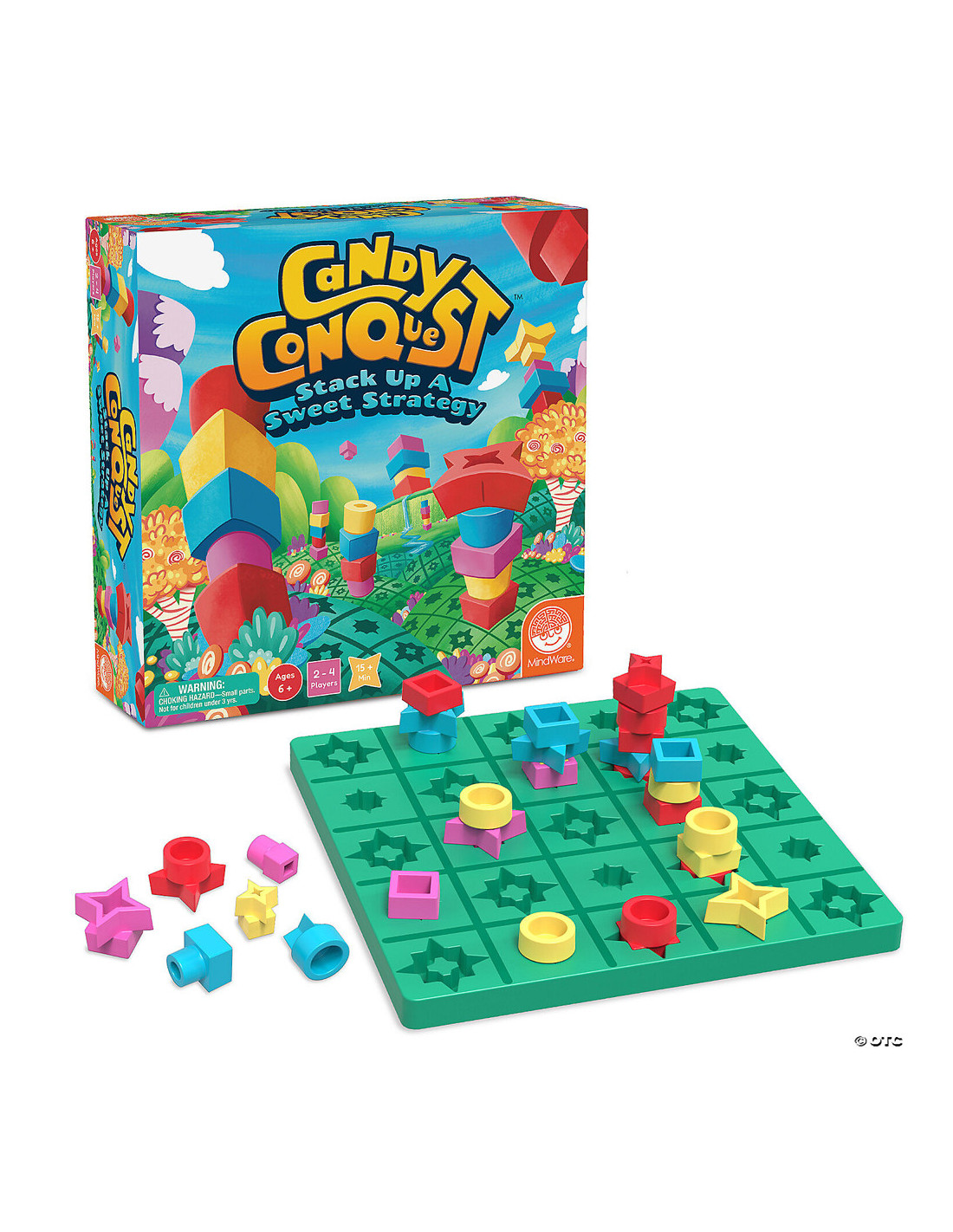• Candy Conquest är en variant av traditionella radspel och utmanar spelarna att strategiskt stapla sina livfulla former på spelplanen samtidigt som de utmanövrerar motståndare. • Utveckla strategiskt tänkande, skärpa problemlösningsförmågan samtidigt som du främjar kritiskt tänkande och beslutsfattande. • Innehåller 96 spelpjäser, 1 spelplan och regler.