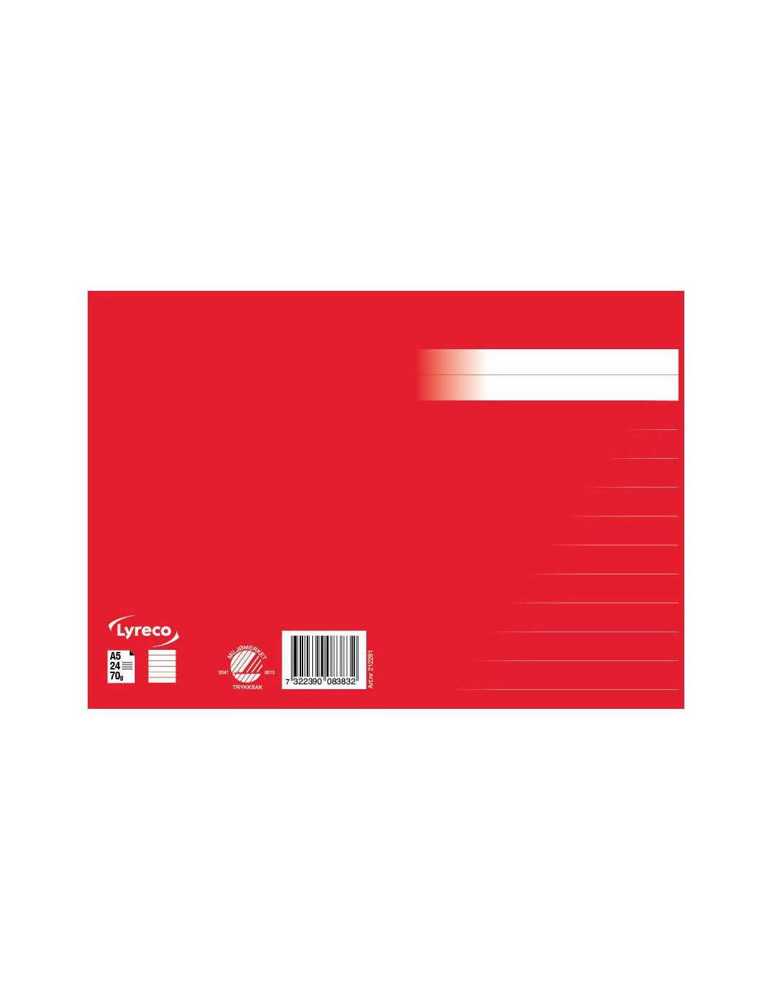 Ett svanenmärkt, linjerat, skrivhäfte med 14,5mm linjeavstånd. I A5 format.