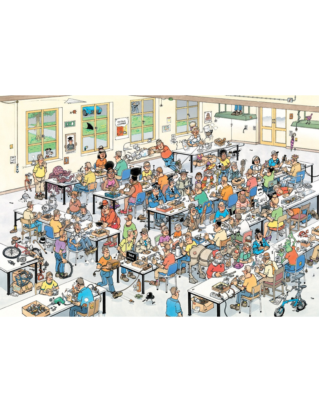 - Motivet Àr en del av Jan van Haasteren-serien. Serien bestÄr av en rad humoristiska motiv med mÄnga roliga detaljer