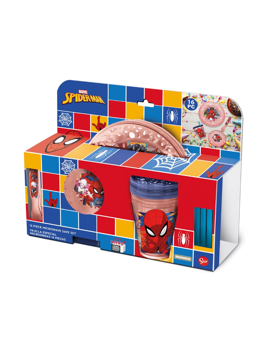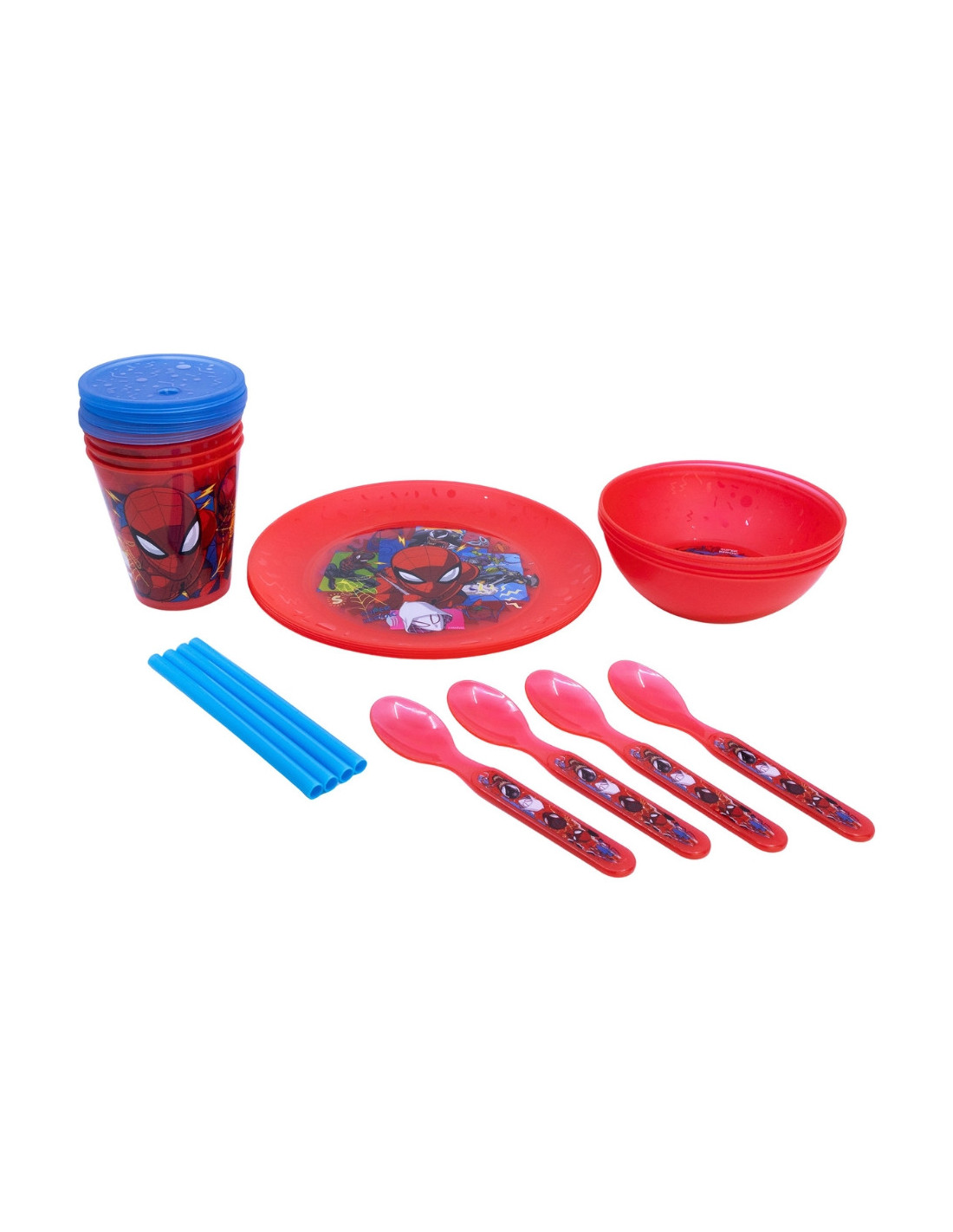 Gör mÄltiden till ett Àventyr med denna fÀrgstarka Spiderman-set för barn, med tufft motiv som garanterat blir en favorit vid matbordet. Perfekt till vardag, kalas eller utflykter. Endast tallriken och skÄlen tÄl mikrovÄgsugn och diskmaskin för enkel anvÀndning och rengöring. Det hÀr 16-delars setet innehÄller 4st tallrikar, 4st djupa tallrikar, 4st muggar med lock+sugrör och 4st skedar.
