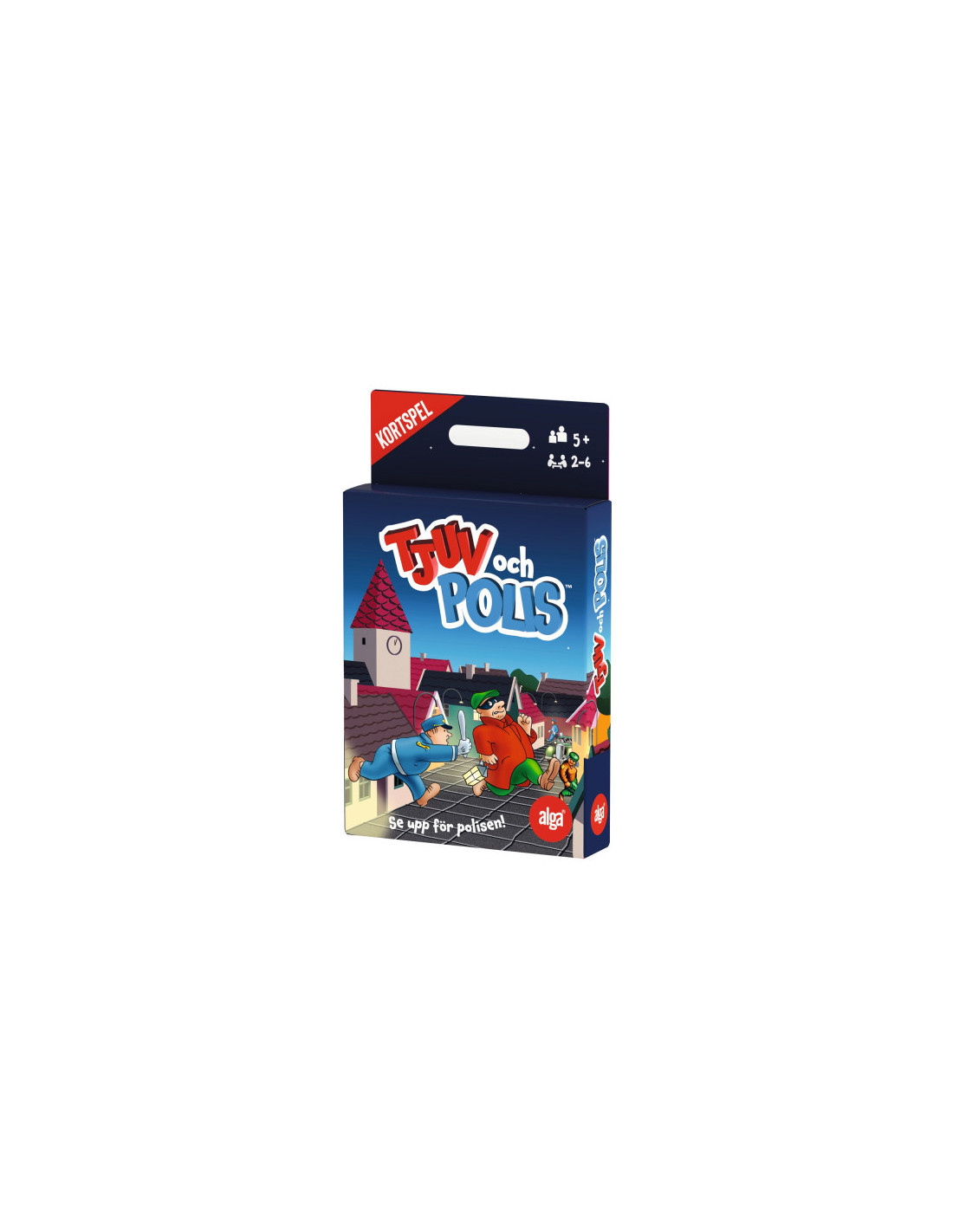 I kortspelet Tjuv och Polis ska du som tjuv stjÀla sÄ mycket pengar som möjligt. Men se upp för poliser! NÀr du fÄr ett par pÄ handen dÀr tjuv och pengasÀck har samma fÀrg lÀgger du ner paret pÄ bordet. NÀr korten Àr slut vinner den som lyckats stjÀla mest pengar! Om en polis kommer upp pÄ bordet gÀller det att snabbt ropa: Polisen kommer!