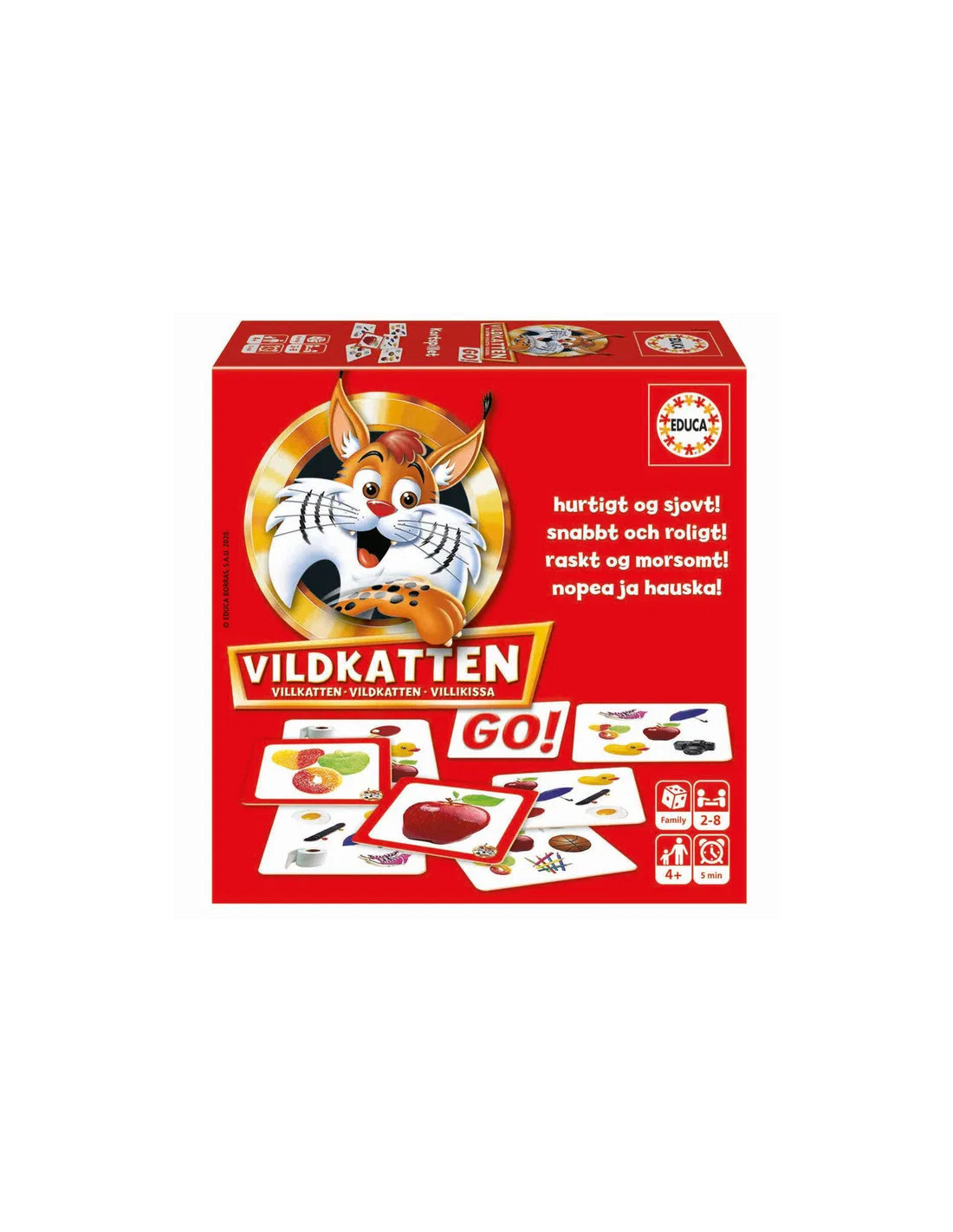 Ta med det populÀra familjespelet nÀr du Àr pÄ sprÄng! Vildkatten GO! Med sÄ mÄnga som 70 kort Àr det ett roligt, enkelt och snabbt observationsspel för hela familjen. HÀr Àr det viktigt att tÀnka snabbt och se om du kan hitta bilderna frÄn korten pÄ de smÄ spelbrÀdorna. Satsen levereras i en liten smart lÄda som Àr perfekt att ta med sig pÄ resan. För 2-8 spelare. Speltid 10 min. FrÄn 4 Är.