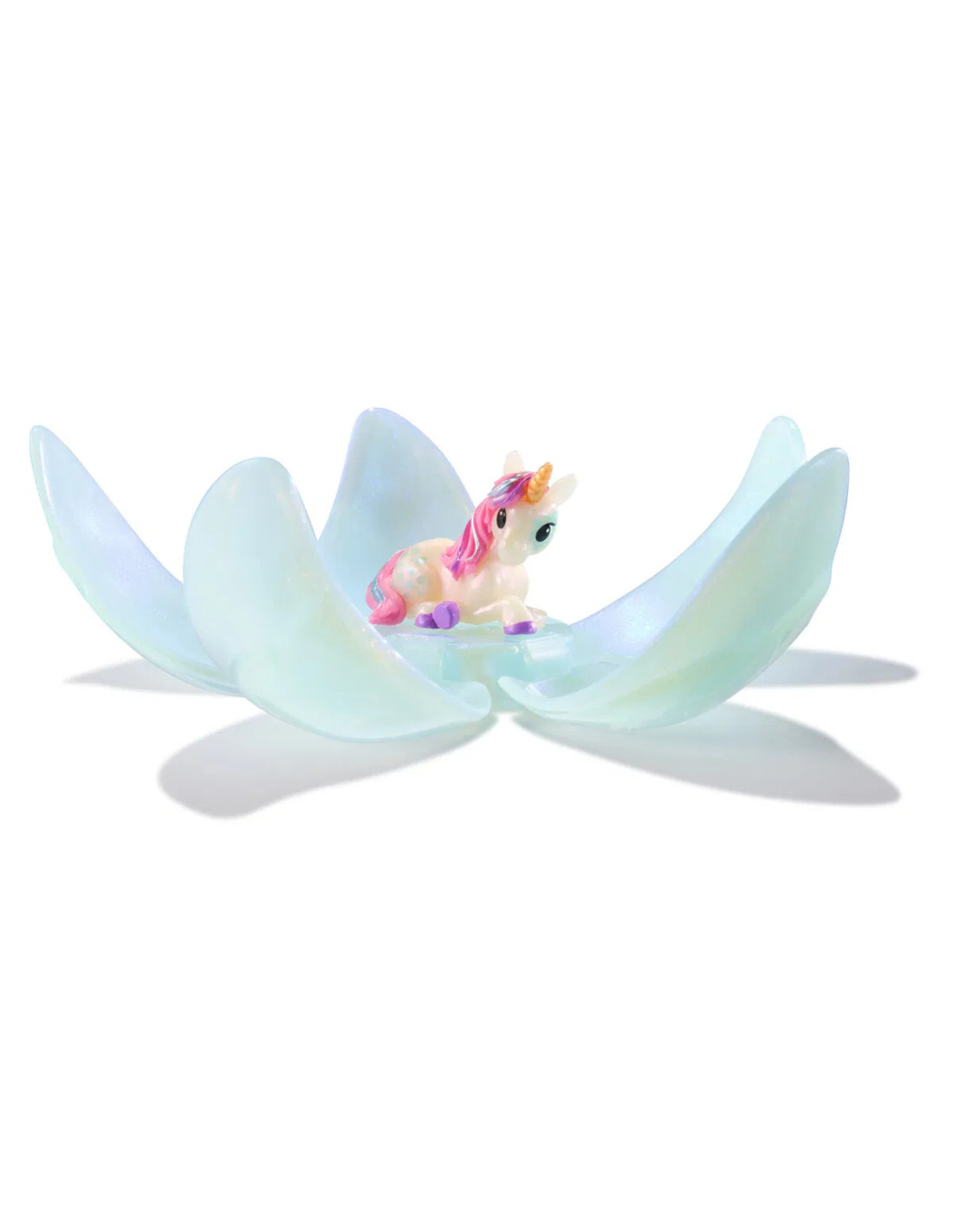 NÀr du har lekt klart kan du stÀlla tillbaka enhörningen i den glittrande blomman.