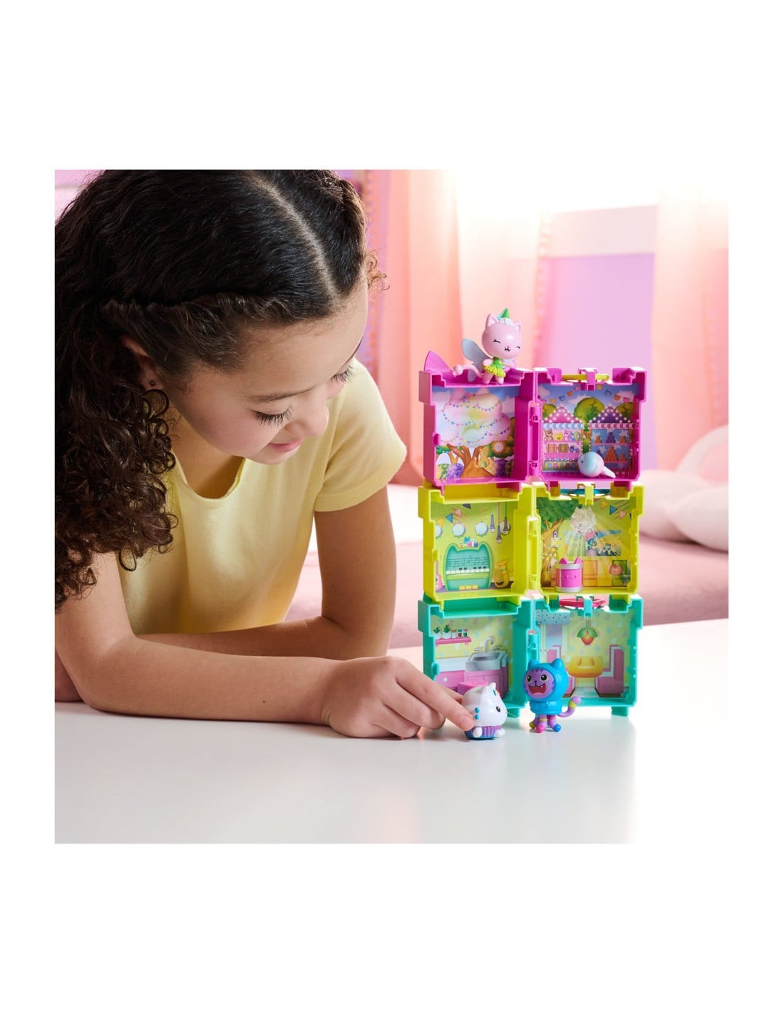 För Ă€nnu mer spĂ€nnande lekhusĂ€ventyr, samla alla tre Gabbyâs Dollhouse minilekseten som kan staplas pĂ„ varandra,