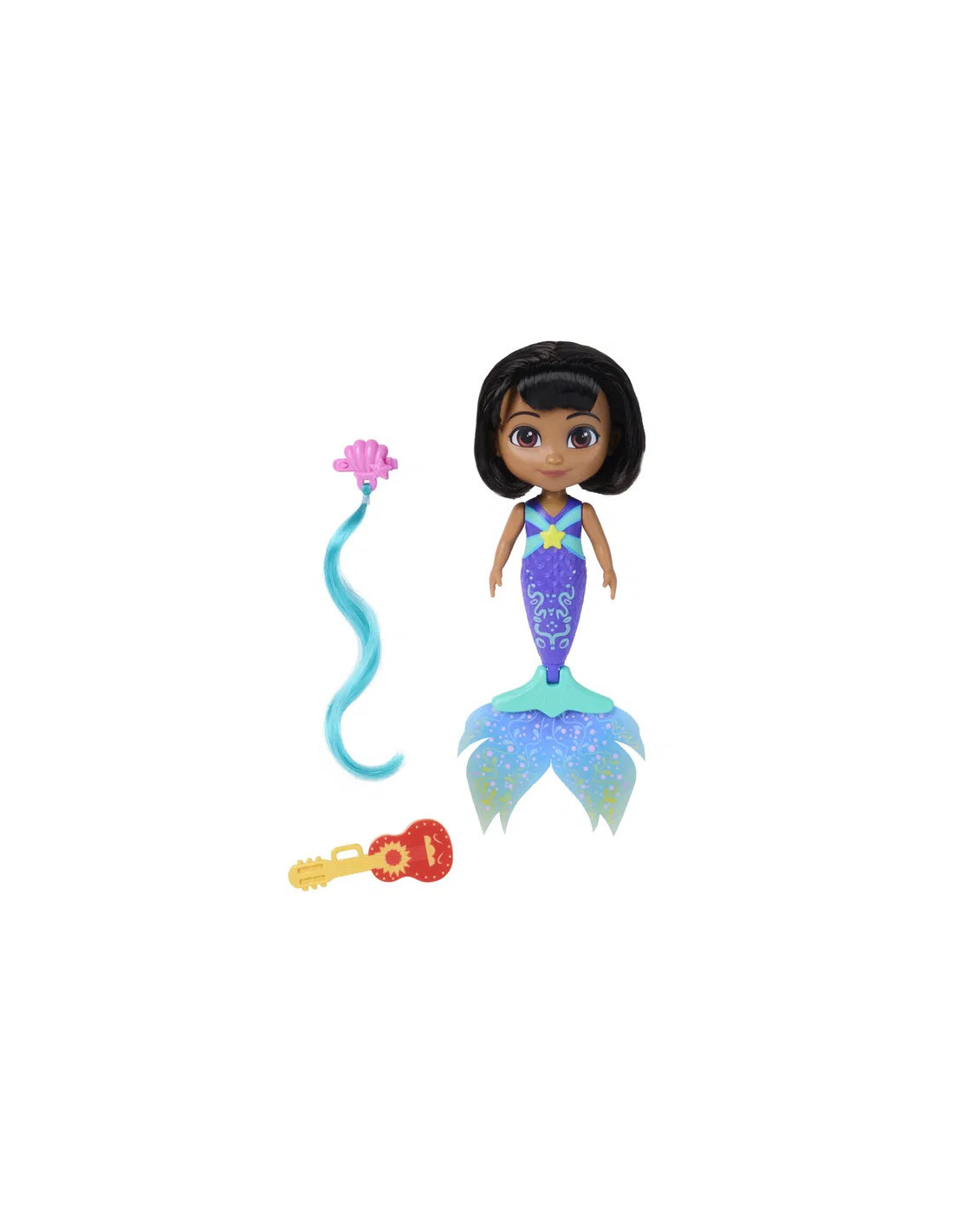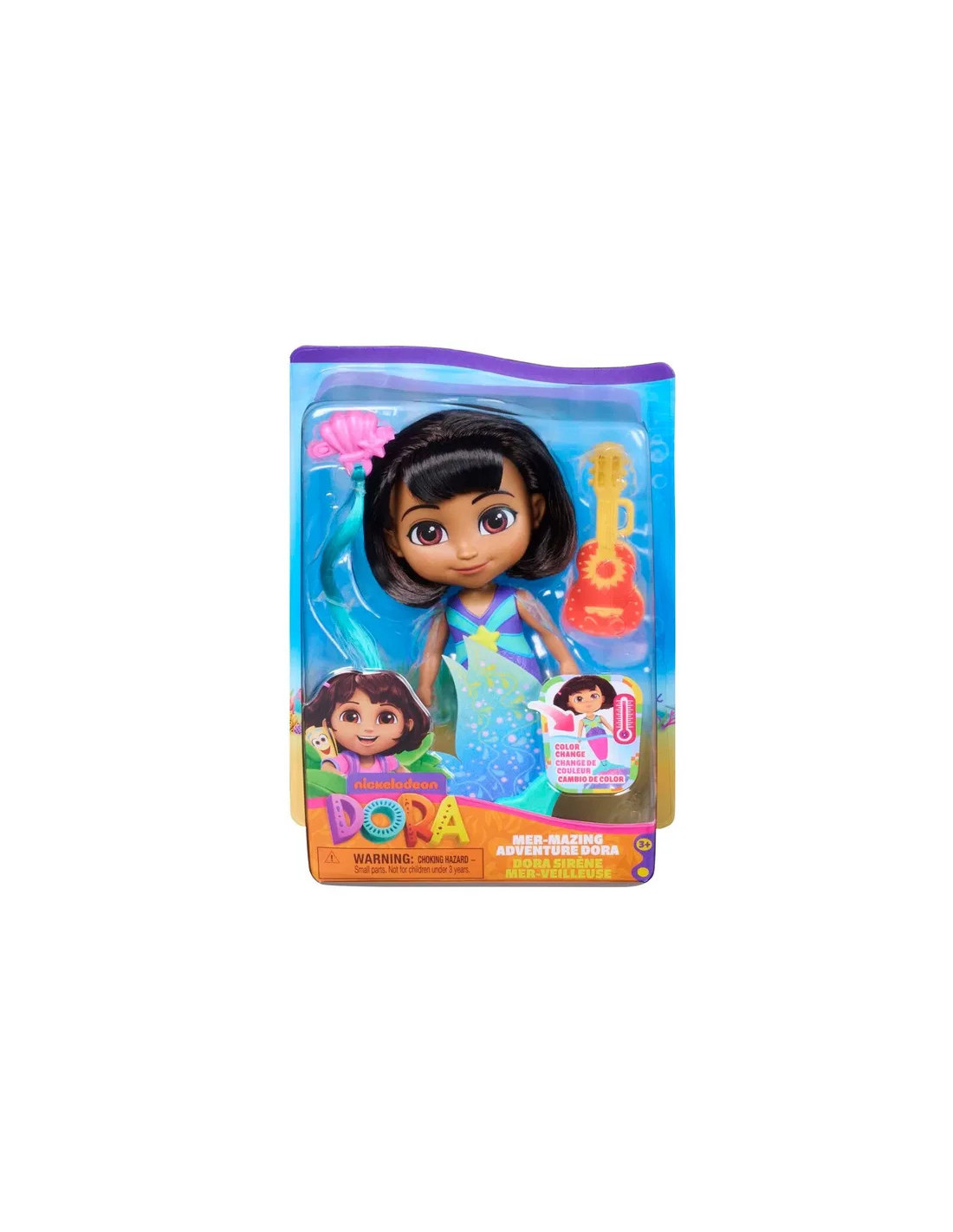 Dyk ner i en undervattensvĂ€rld av Ă€ventyr med den fantastiska sjöjungfru-Dora dockan. Hon Ă€r 15 cm hög, och denna fĂ€rgglada sjöjungfru-Dora kommer till liv nĂ€r hon doppas i varmt vatten â hennes kropp byter fĂ€rg till rosa, och hennes vĂ€ndbara fena lĂ„ter dig mixa och matcha nyanser innan den viks platt sĂ„ hon kan stĂ„ sjĂ€lv. HĂ„rspĂ€nnet med snĂ€ckskal har ett rosa hĂ„rförlĂ€ngning â styla Dora eller dig sjĂ€lv för en fĂ€rgglad, sjöjungfruinspirerad look. Med sin charango, som ocksĂ„ fungerar som borste, Ă€r Dora redo att skapa fantasifulla lekar vart hon Ă€n gĂ„r.