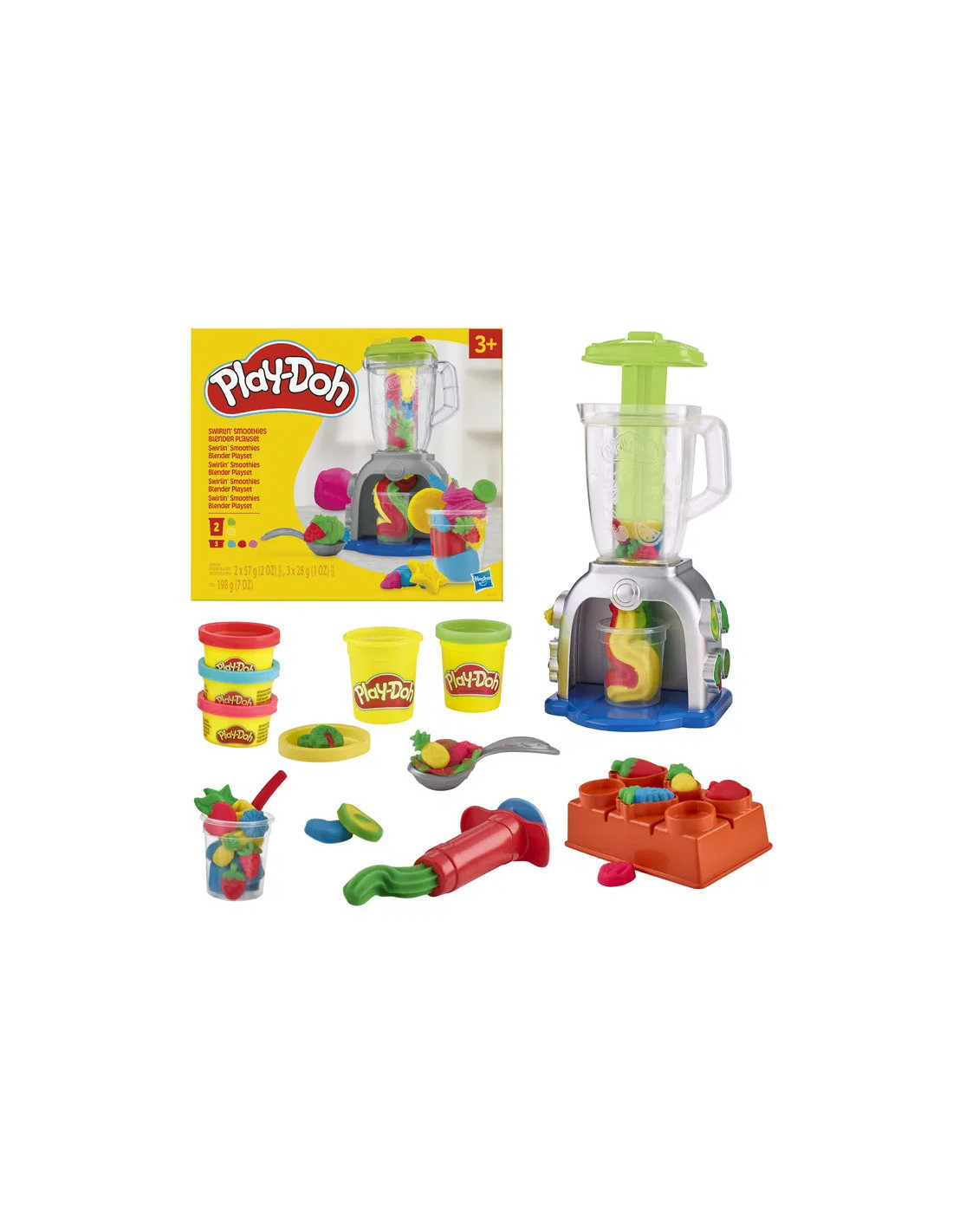 SlÀpp loss fantasin med Play-Doh Swirlin' Smoothies Blender-leksetet! Med matleksetet kan barn frÄn 3 Är skapa frukt och grönsaker av Play-Doh, stoppa dem i mixern och trycka genom dem för att skapa jÀttefÀrgglada lÄtsassmoothies! Och det finns inga grÀnser nÀr det Àr dags att garnera dem! Rosa vispad Play-Doh-grÀdde? Varför inte? Gula lÄtsasjordgubbar? SÄ klart! BlÄ fantasibroccoli? Javisst! Play-Doh-set som Swirlin' Smoothies Blender-leksetet Àr suverÀna kreativa leksaker för barn frÄn 3 Är