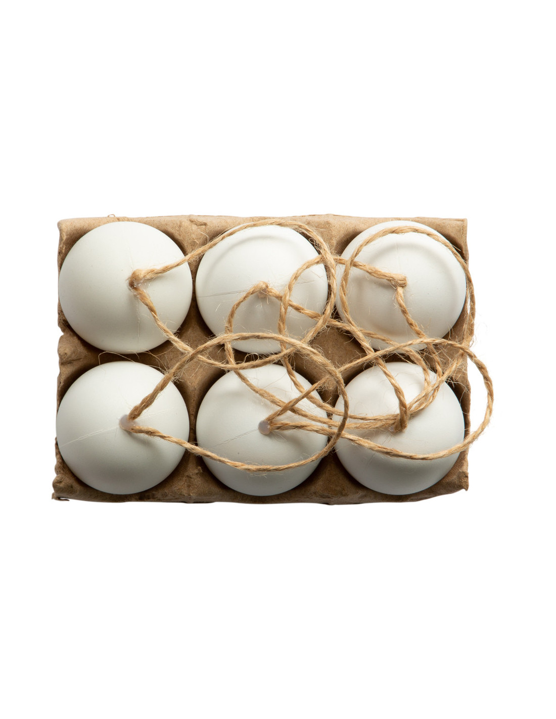 6 pack vita ägg med snöre. Perfekta att måla/dekorera och hänga upp i påskriset! Äggen är tillverkade av PS-plast.