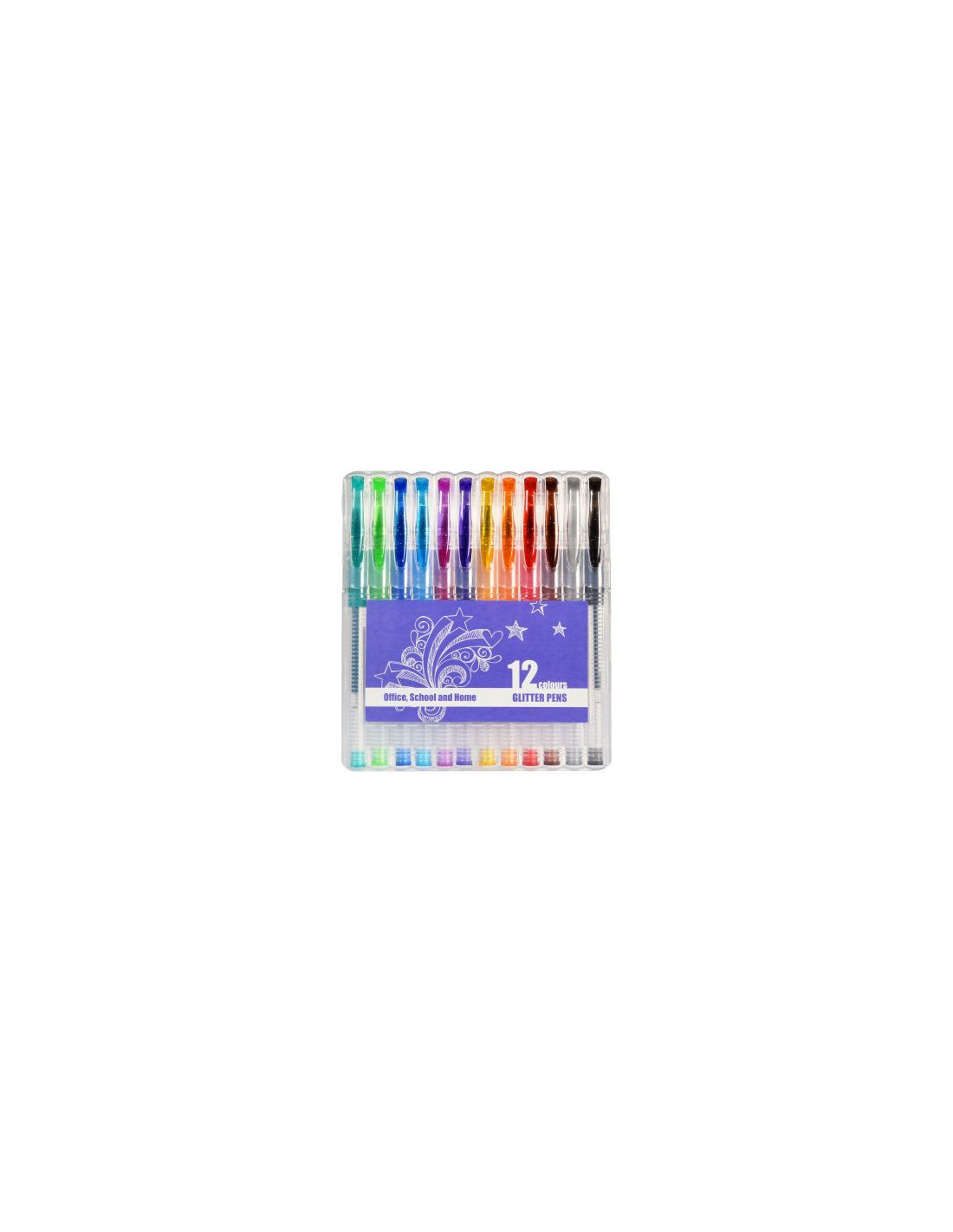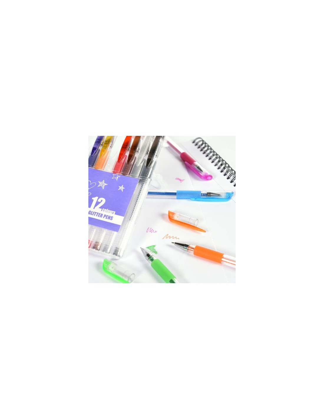 Glitterpennor i 12 olika fÀrger med 1 mm spetsbredd i praktiskt fristÄende fodral som gör det enkelt att hitta rÀtt fÀrg.