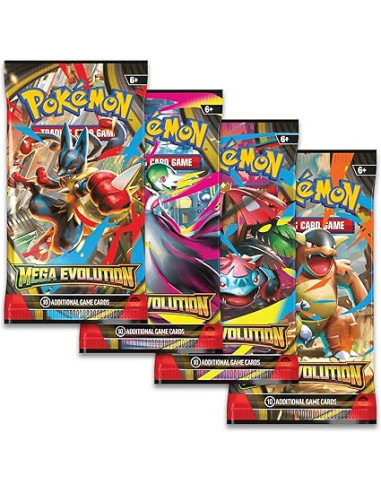 Funktioner 1 Booster Pack med 10 kort: Chans till sÀllsynta Mega Evolution Pokémon-föremÄl.