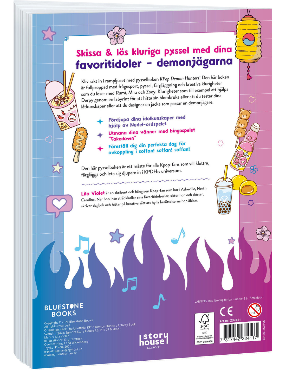 Kliv rakt in i rampljuset med pysselboken KPop Demon hunters! Den här boken är fullproppad med frågesport, pyssel, färgläggning och kreativa klurigheter som du löser med Rumi, Mira och Zoey. Klurigheter som till exempel att hjälpa Derpy genom en labyrint för att hitta sin blomkruka eller att du testar dina låtkunskaper eller att du designar en jacka som passar en demonjägare.