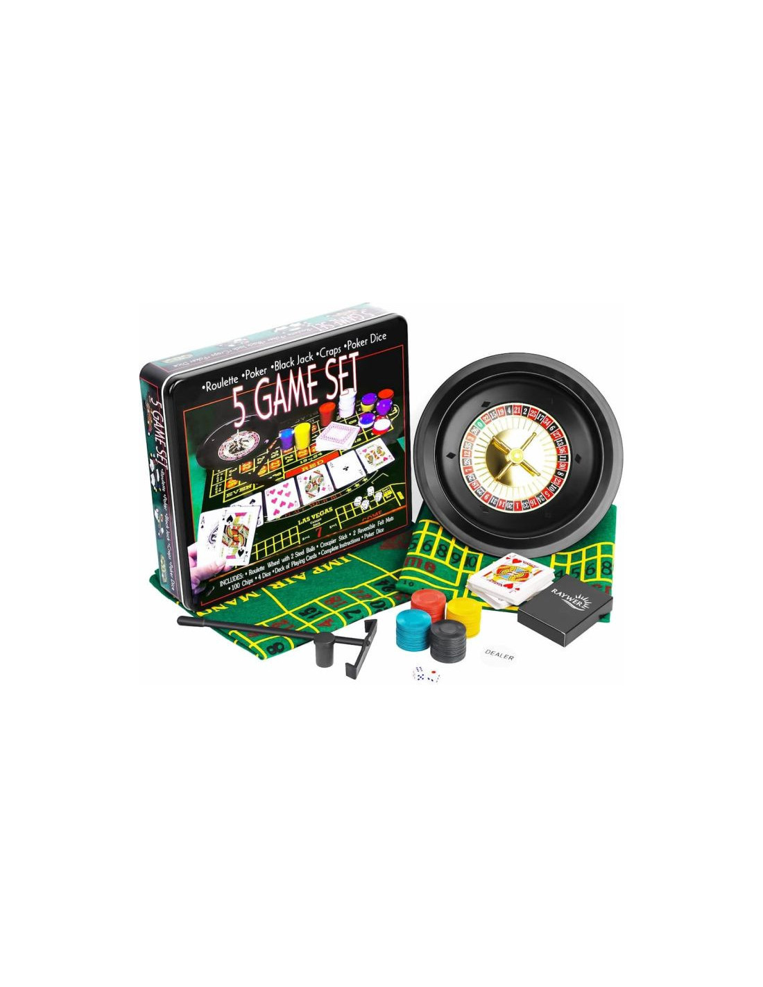 Ett komplett hemmakasinoset med fem klassiska spel i en låda: