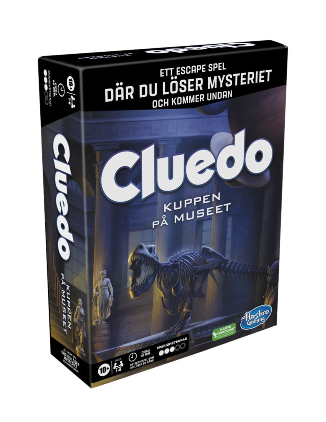 Cluedo Kuppen på museet är ett Escape- och Mysteriebrädspel med klassiska Cluedo-karaktärer och en helt ny form av mysterium som måste lösas i ett Escape Room-format.