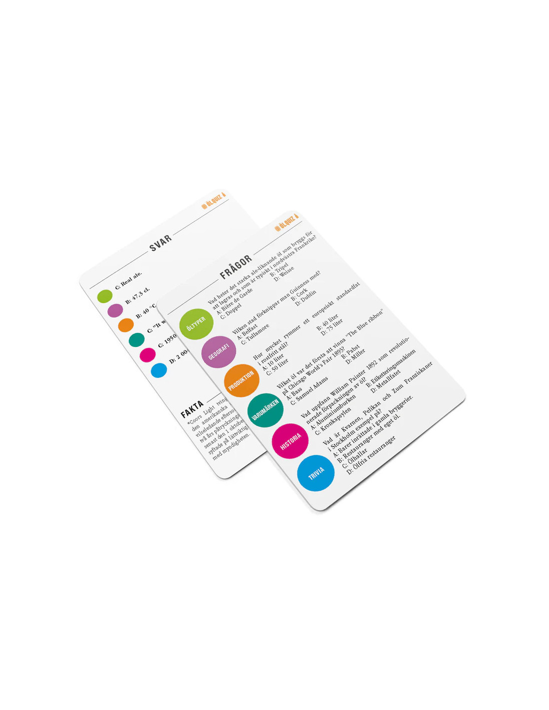 I Ölquiz presenteras den rika ölkulturen i kluriga, roliga och lärorika frågor. Här blandas skratt och gissningar med kuriosa och kunskap om allt från ölstilar och bryggtekniker till historia, geografi och ölkultur världen över. Spelet passar lika bra för nyfikna nybörjare som för inbitna öldrickare.