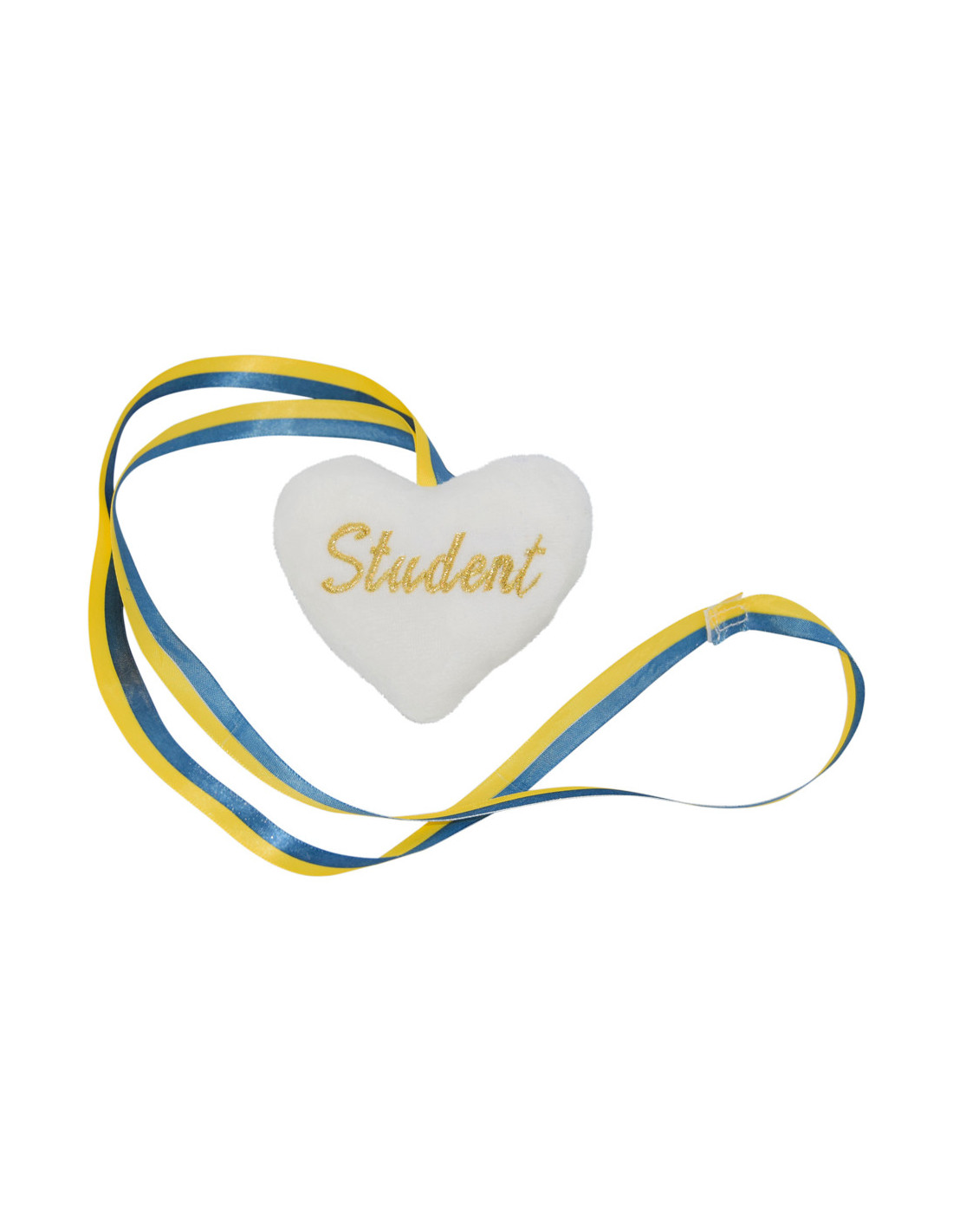 KÀrleksfull studentnalle i hjÀrtformat. NÀr examensdagen Àntligen Àr kommen Àr denna studentnalle ett perfekt val för dig som vill gratulera nÄgon som du tycker extra mycket om. HÀng studenthjÀrtat runt halsen med hjÀlp av det blÄgula bandet. Studentnallen Àr ca 8 CM och Àr ett kÀrleksfullt bidrag till all pompa och stÄt vid studentfirandet.