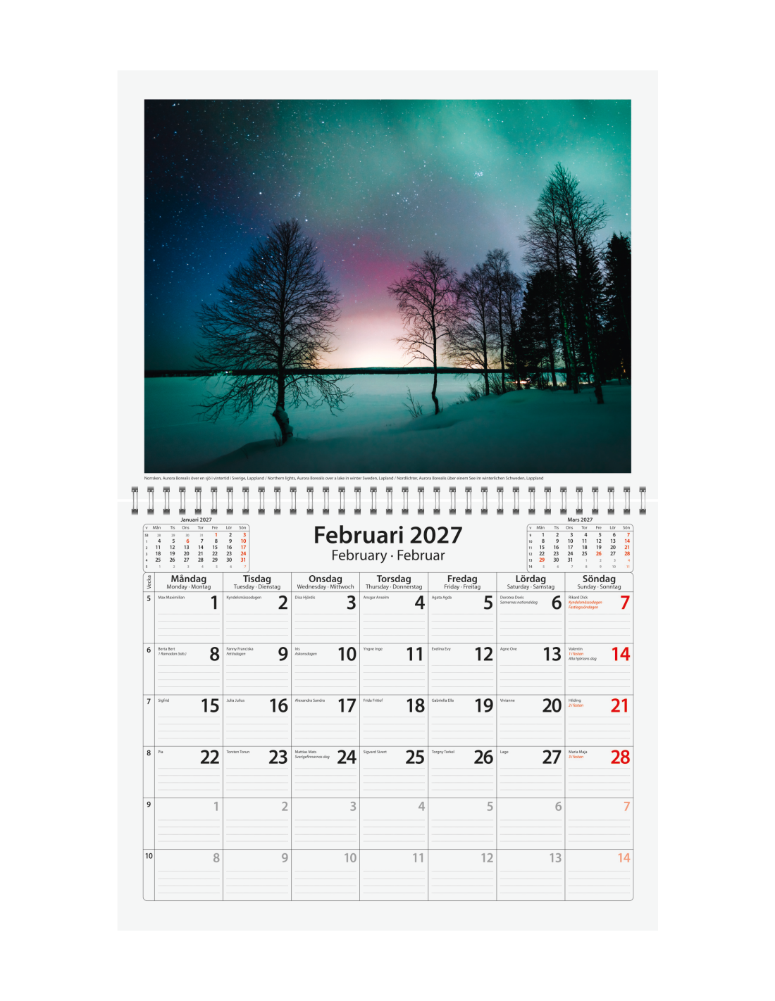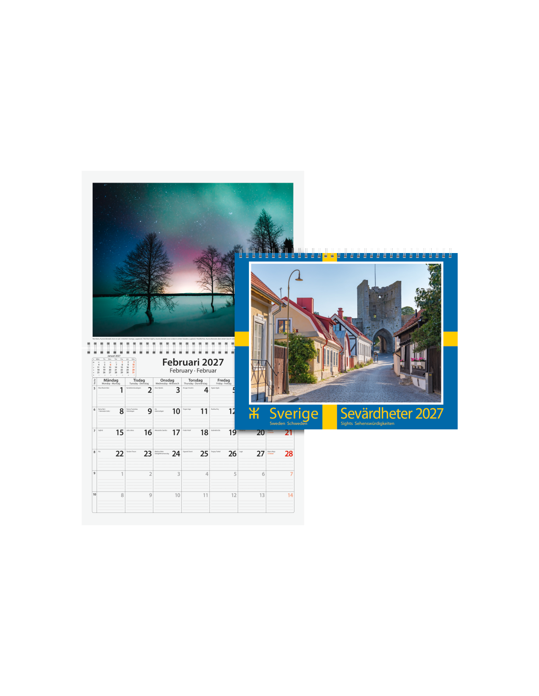 • 12 månadsblad, med bild på varje uppslag