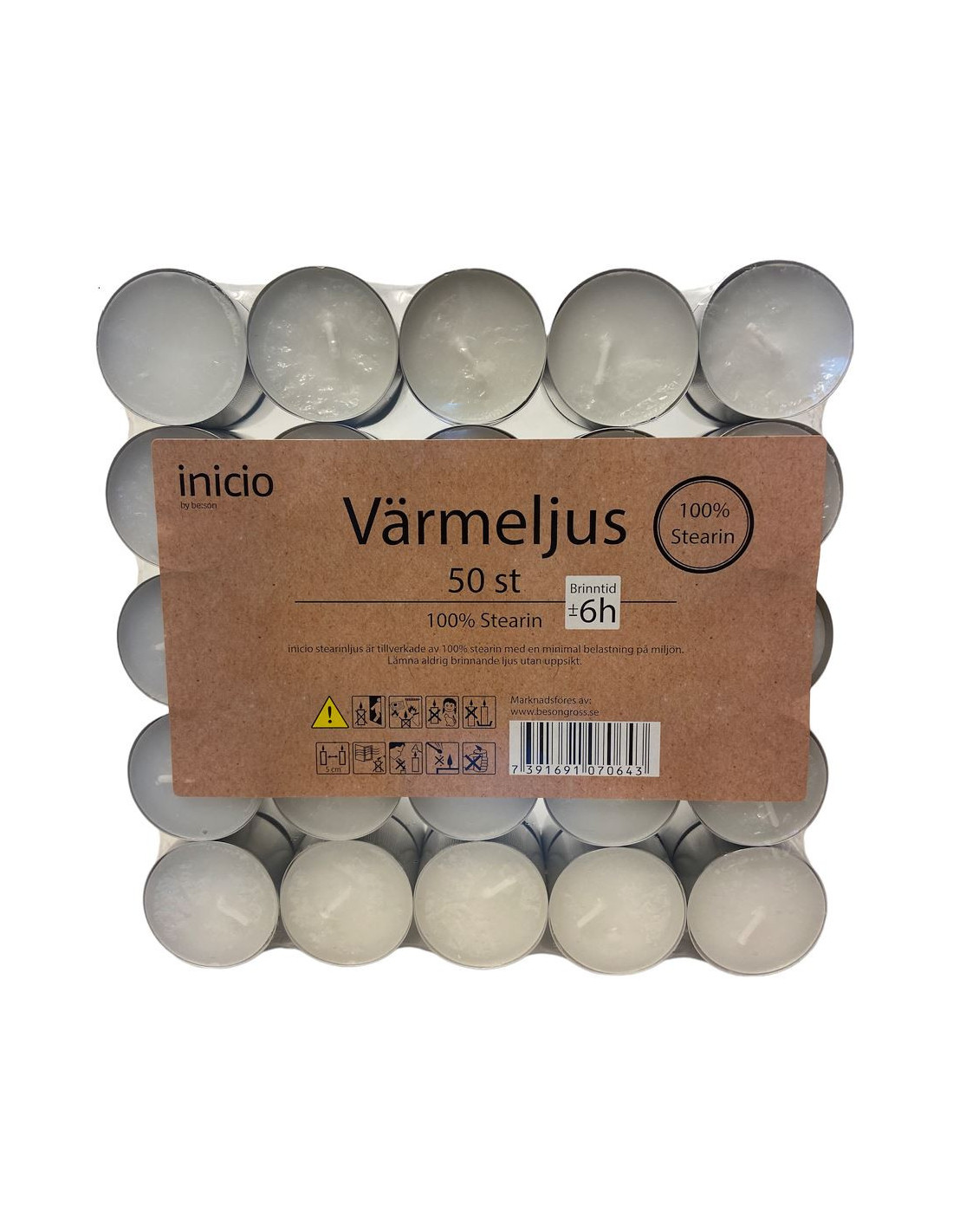 Inicio Värmeljus Stearin 50p, 6 h brinntid, ger ett mjukt och långvarigt ljus för alla tillfällen. Perfekta för att skapa mysig stämning hemma eller vid festliga sammanhang. Med 50 värmeljus i varje förpackning får du gott om ljus till ett bra pris. Hög kvalitet och miljövänlig stearin gör dem både pålitliga och hållbara.